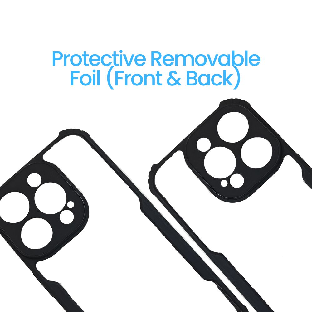 Material: Hard Clear Polycarbonate Back + Flexible Black TPU Edges