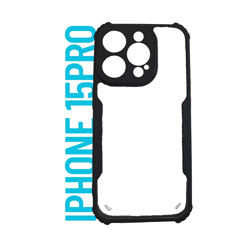 Apple iPhone 15 Pro Clear Back Case with Black Bumper | Transparent Shockproof Cover | Slim Fit Protective Case