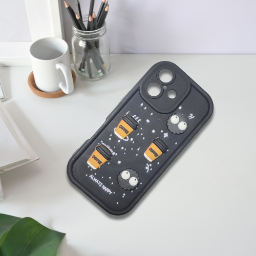 Apple iPhone 16 – Black - Shadow Pop – Mecha Minis | Kawaii 3D Cartoon Character Soft Case